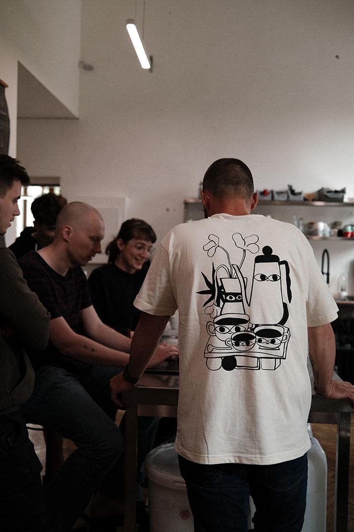 The latest merchandise from Father's was created with joy – and that's exactly how it feels when you wear it. The unisex oversized cut fits everyone, whether you're tasting a lot from Colombia or running around a café. Minimalist, comfortable, with an original print by illustrator Barbora Idesová. If you want merchandise, go for something with soul.