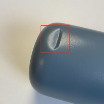 The mug has two dents in the bottom. Stability is not affected and the mug stands upright without any problems.