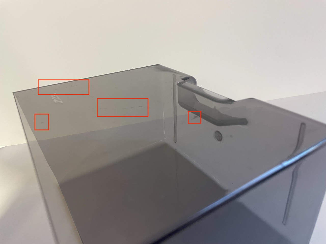 The coffee maker has been used four times and, apart from minor scratches on the drip tray and water container, it is in perfect condition and includes all accessories.