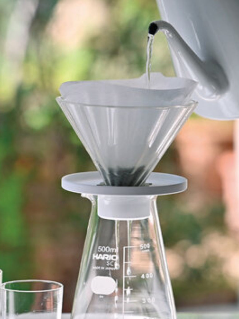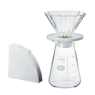 To make tea, just place a dripper with a paper filter on the server, pour loose tea inside and pour hot water over it. Dripper is compatible with Hario V60-02 conical filters.