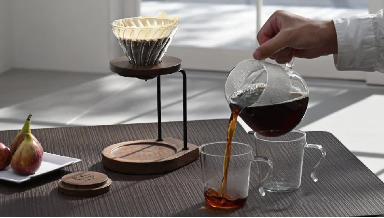 The Hario Walnut Series Drip Stand combines the natural beauty of walnut wood with elegant black stainless steel, transforming any coffee corner into a designer space. Thanks to its compact size (160 × 140 × 158 mm), it fits easily on a kitchen counter or barista station, yet still looks luxurious.