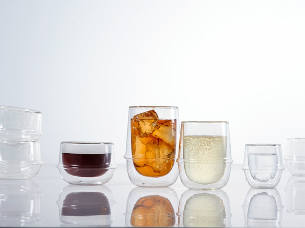 Thanks to the double wall of the Kinto KRONOS glass, drinks look like they are floating in the air. The ring supports the fingers for an easy grip and the mug has the perfect angle for drinking. Thanks to the thermal insulation design, the mugs keep the temperature of hot and cold drinks for a long time. The glasses can also be ideal for serving desserts or appetizers.