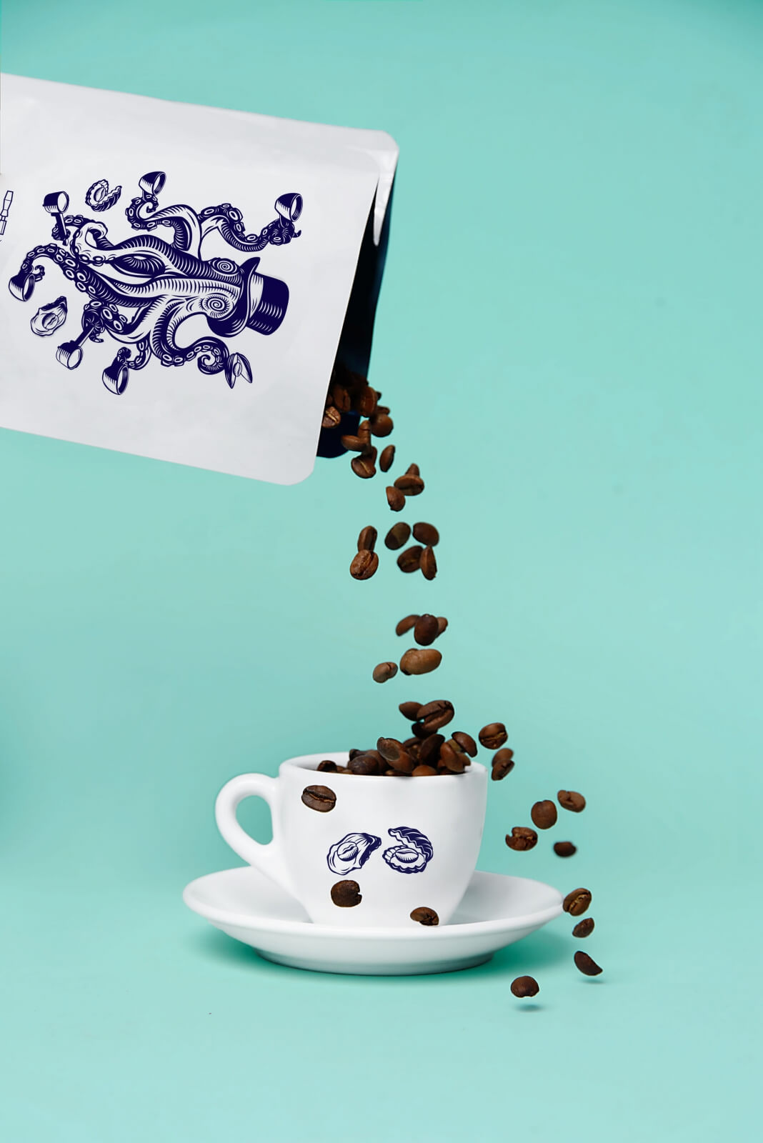 The logo was created by Miklos Kiss (graphic designer). The octopus is symbolic of the modern and entertaining barista.
