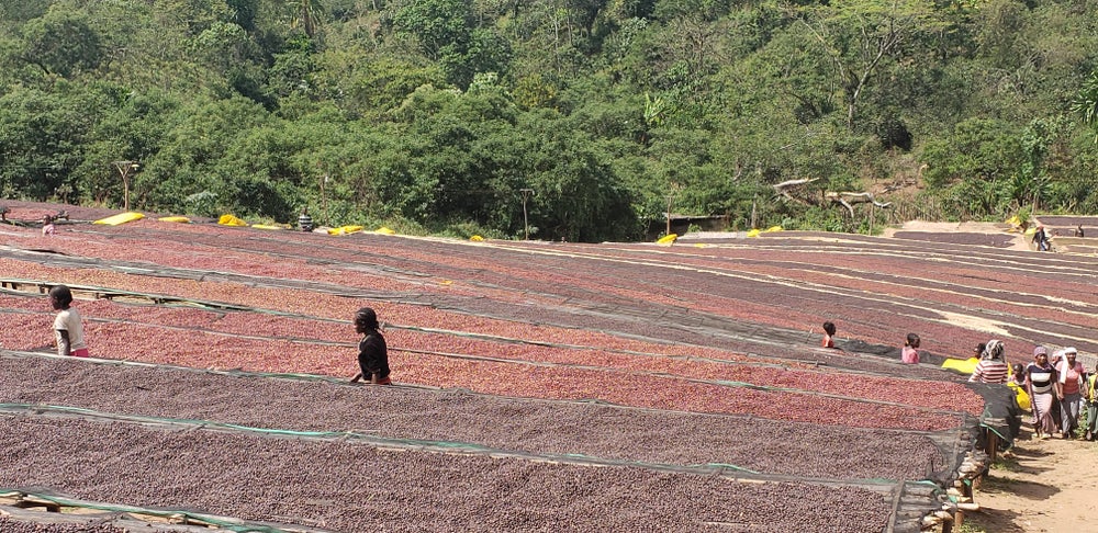 Processing is done using the natural method, which enhances the sweetness and body of the cup. After selective hand-picking, the cherries are sorted and then dried on raised African beds for 11–15 days, where they are regularly turned and protected from direct sunlight. This slow process allows for the development of complex flavors and a stable profile. The result is an espresso that combines typical Ethiopian floral notes with a delicate sweetness and a creamier body, delivering an elegant and balanced taste experience.
