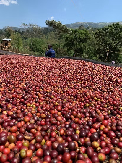 The beans come from the Guji region of Ethiopia, specifically Shakiso, where they are grown by small-scale farmers at altitudes between 1,950 and 2,210 meters above sea level.The production is managed by Dimtu Coffee Industry, which has long collaborated with farmers to help them bring their coffee to market in the best possible quality. Thanks to the high altitude, the coffee cherries ripen more slowly, accumulating more sugars, resulting in a more pronounced sweetness and a more complex flavor profile. The Heirloom varieties, along with the 74110 and 74112 variants, give the coffee the typical Ethiopian playfulness and fruitiness that is so characteristic of Guji.