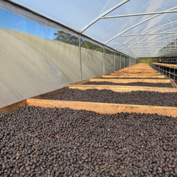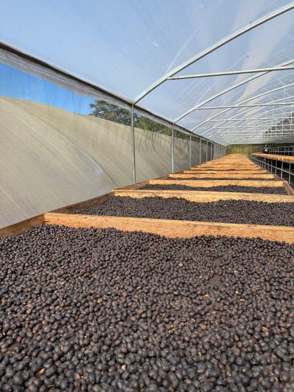 Processing is natural (dry), where the cherries are dried whole without removing the pulp. This processing method enhances the coffee’s sweetness and fruity character and gives the cup a fuller body. The Yellow Pacamara variety used is known for its distinctive bean size and ability to offer a complex and well-defined flavor profile. The result is a coffee with a clear structure, a sweet base, and a fruity character that remains distinct even in the aftertaste.