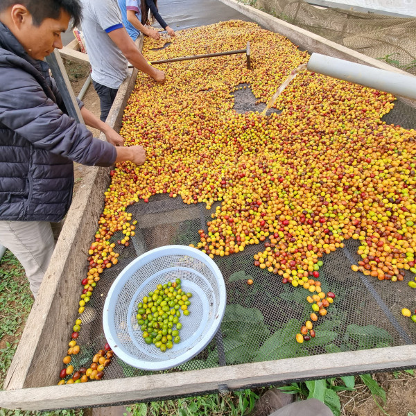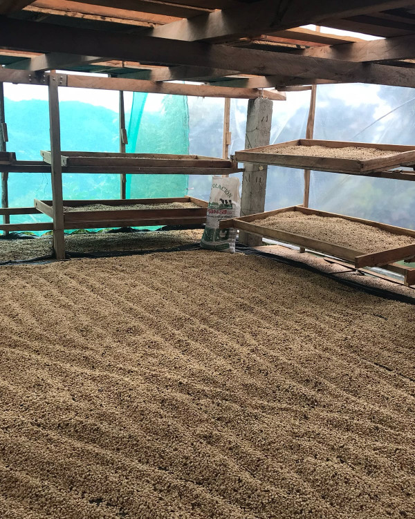 The Pacamara variety shows its full potential here—it is distinctive, structured, and unmistakable. This lot is processed using the dry method, which gives the coffee body, sweetness, and more pronounced aromatics. After harvest, the whole coffee cherries are dried without removing the pulp, allowing for the natural development of intense flavors and a fuller body. In this case, drying takes place in a solar parabolic dryer, which ensures stable conditions and a uniform process throughout. Edinson also works with great precision and attention to detail, allowing him to achieve consistent results and a clean flavor profile even in natural coffees.